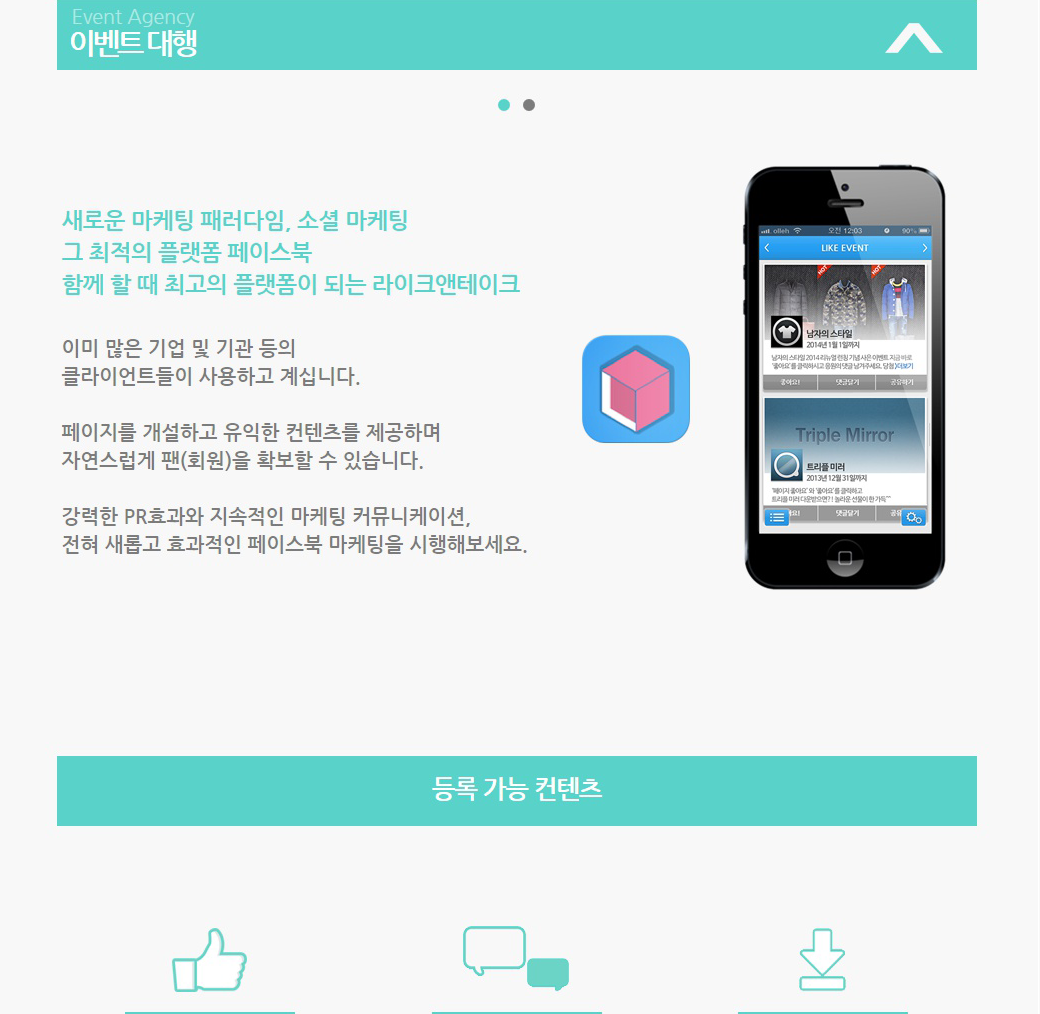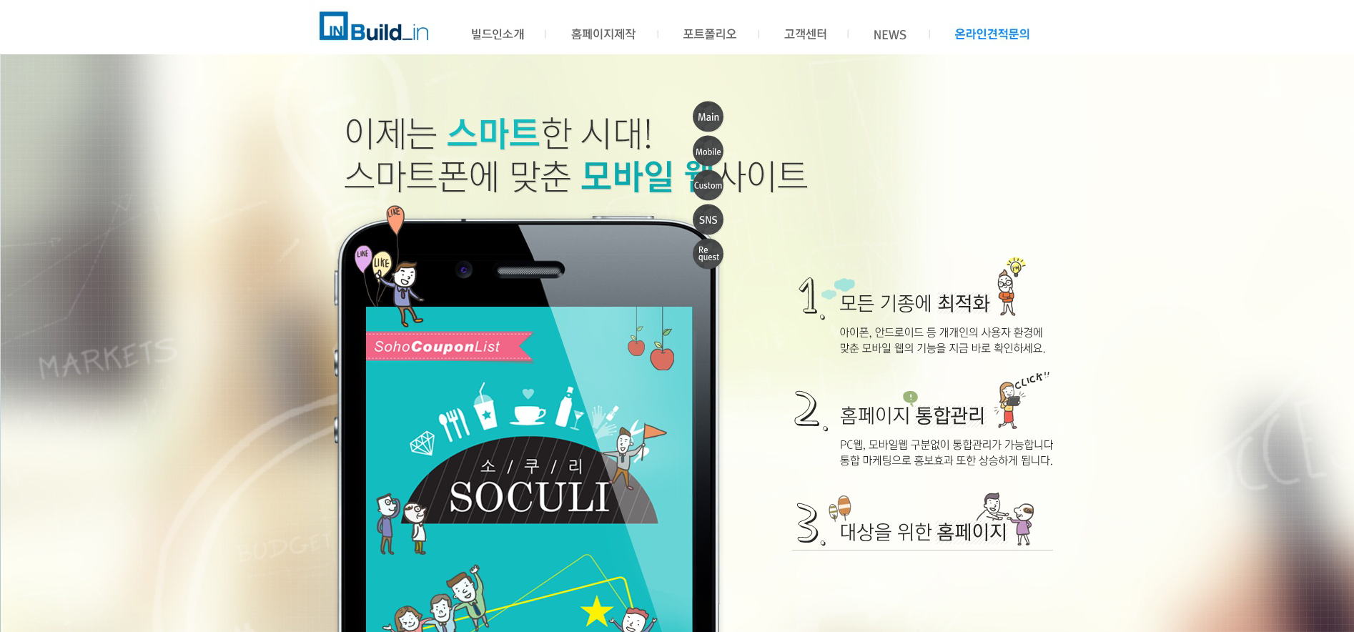 일반적인 홈페이지 제작 뿐만 아니라. 쇼핑몰 및 소셜커머스, LBS 쿠폰 서비스