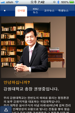 학교소개, 입학안내, 도서관, 식단조회 등의