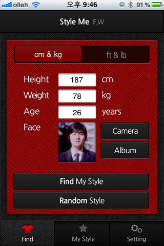 사용자의 신장, 체중, 나이, 그리고 사진을 입력하면