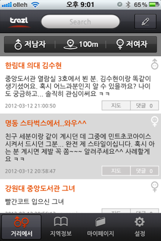거리에서 마음에 드는 이성을 찾아주는 마이크로 SNS까지 제공하여