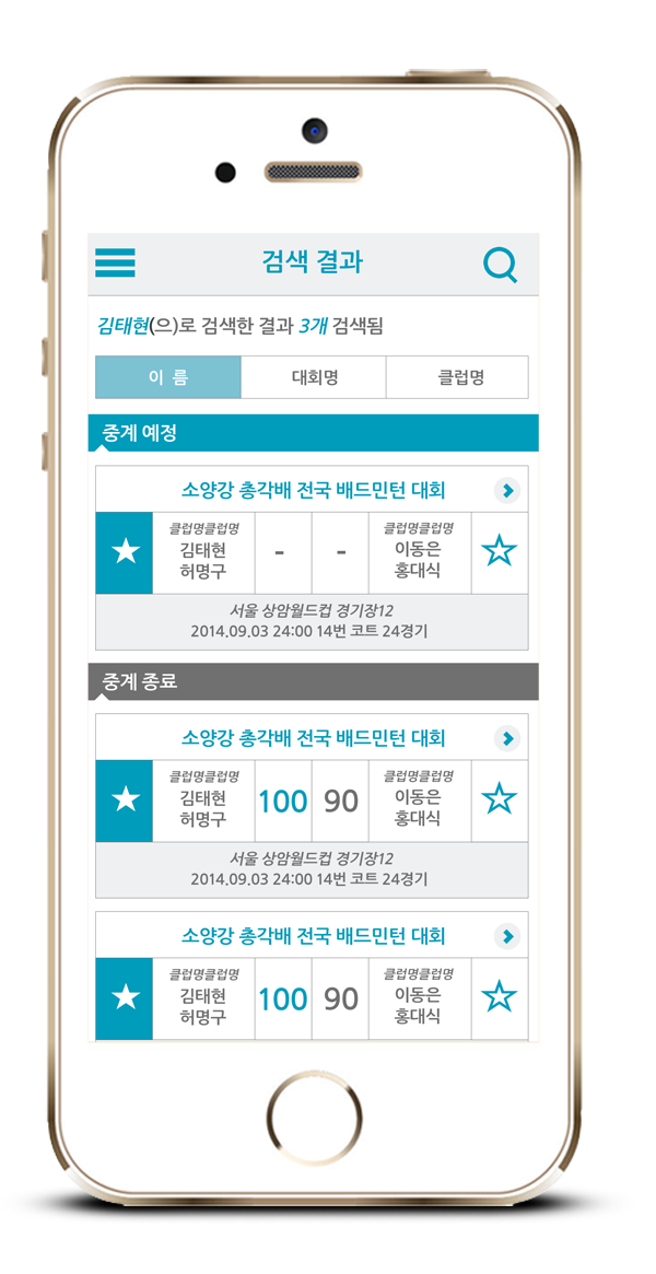 즐겨찾기를 통해 자신의 경기를 관리할 수 있으며 경기 시간을 실시간으로 알려주어 경기에 원활히 참여할 수 있도록 도와줍니다.